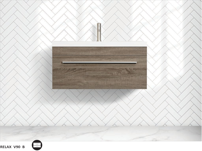 Vanité à montage mural en mélamine dotée d'un tiroir, incluant un lavabo modèle RELAX 36